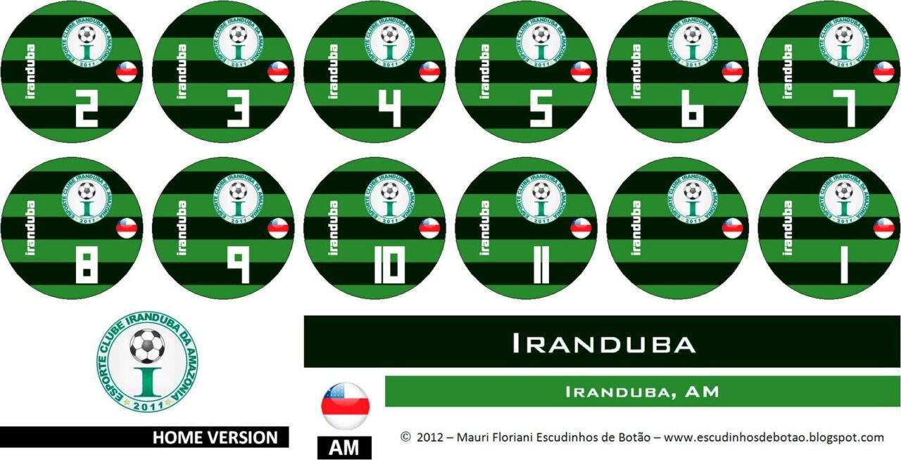 Mais uma cartela do Campeonato Amazonense 2012, onde a bola da vez é o Iranduba, clube da cidade homônima de Iranduba – AM. É a quarta cartela do estadual do Amazonas no total de dez clubes.