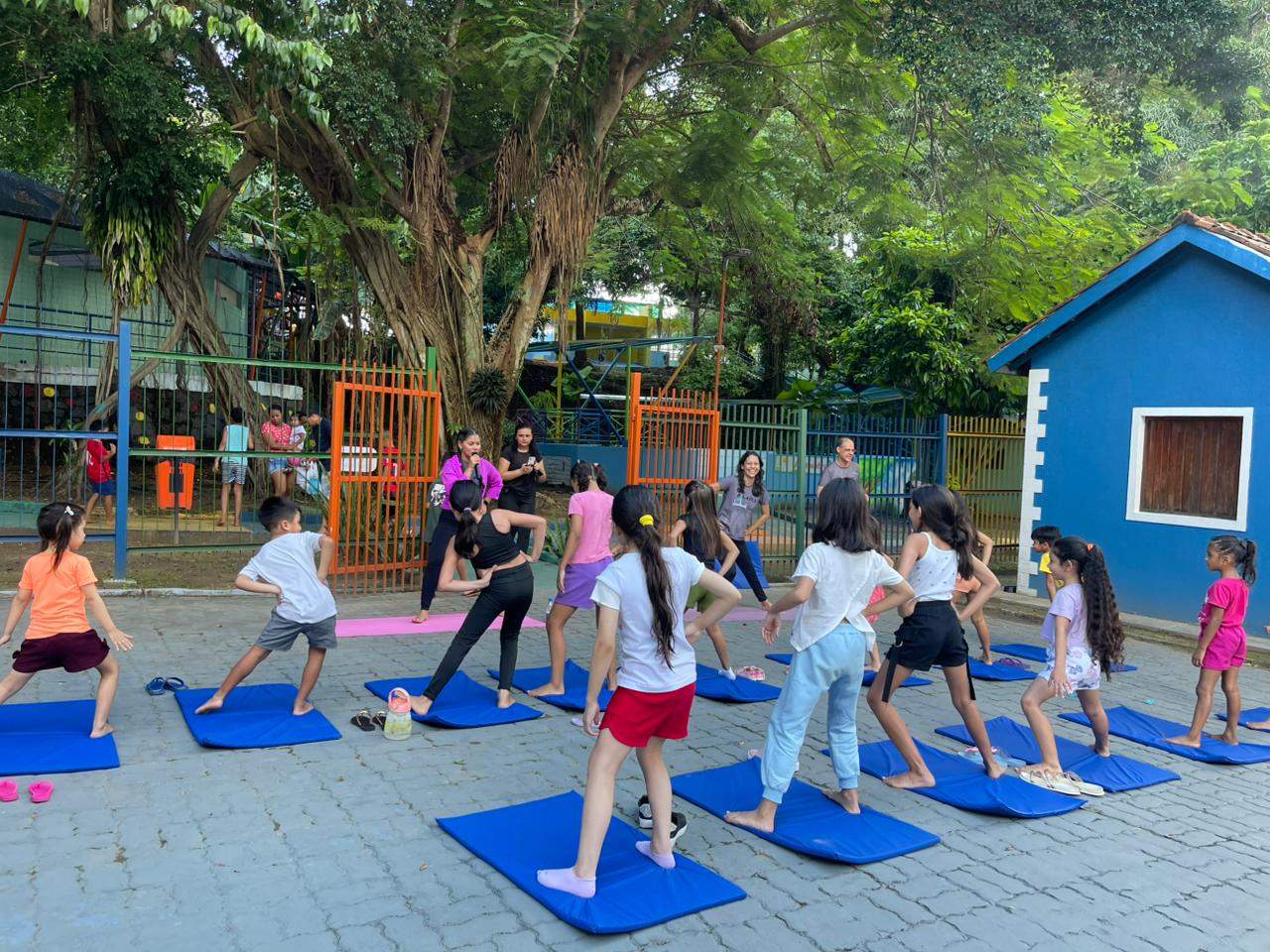 Atividade de Pilates Kids agrada crianças durante colônia de férias da Prefeitura de Manaus - No Amazonas é Assim