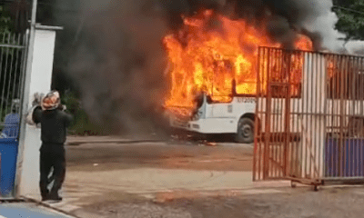 Um ônibus do transporte público foi completamente destruído por um incêndio de grandes proporções na manhã desta segunda-feira (12), no Parque Riachuelo, bairro Tarumã, zona oeste...