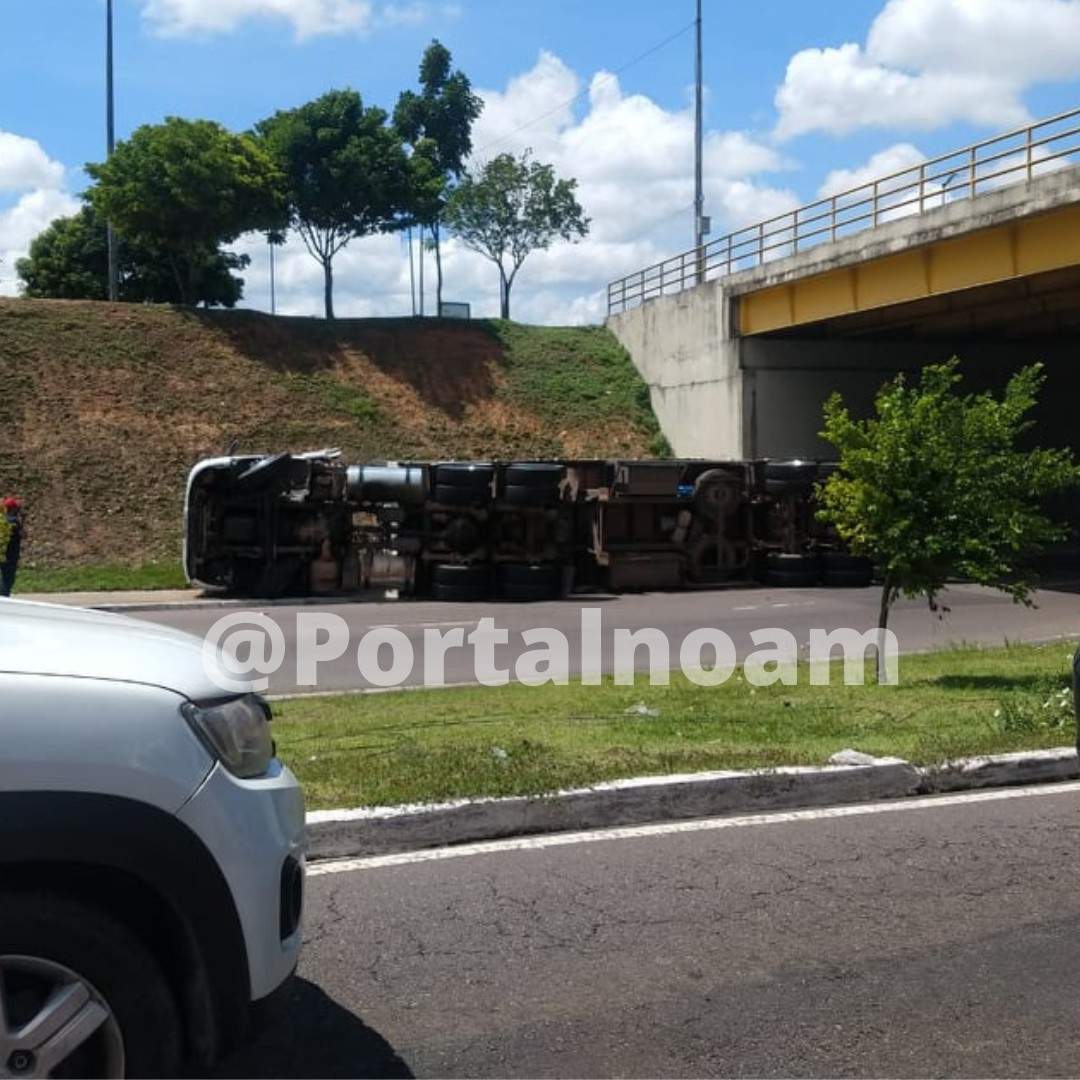 Caminhão vira em viaduto da Zona Norte de Manaus