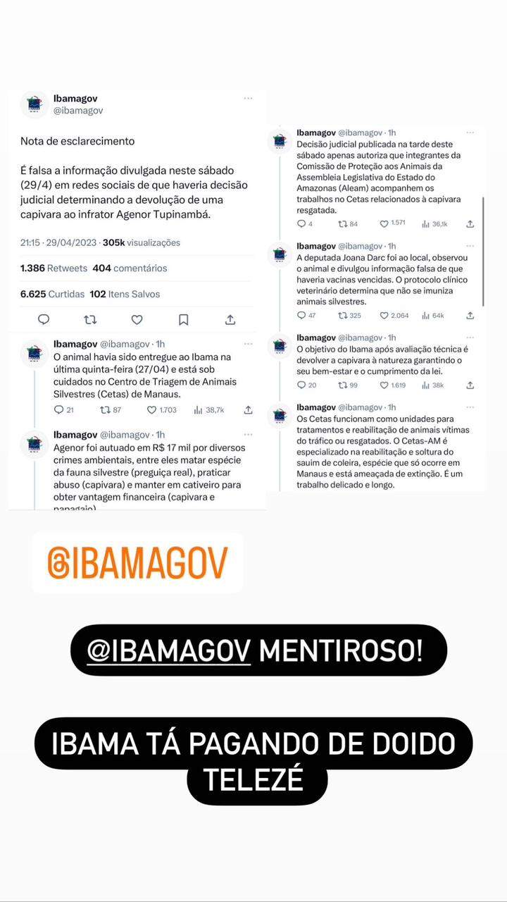 Porém, após a declaração da Deputada Joana, o IBAMA, através das redes sociais, acusou a deputada estadual Joana Darc de divulgar informações falsas de vacinas vencidas. Porém em seguida, Joana fez questão de postar todas os registros feitos dentro da própria sede do órgão, através de stories no Instagram. Nas imagens é possível ver vários medicamentos vencidos, vacinas e até carne vencidos.