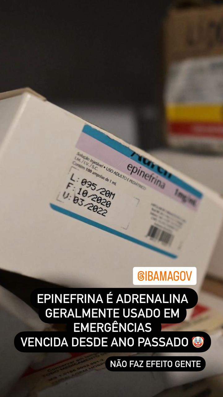 Ainda no vídeo a parlamentar mostra medicamentos vencidos de 2016, 2021e 2022. Nas imagens divulgadas por Joana aparece um medicamento para diarreia vencido desde 2020. Mostra ainda Epinefrina ou Adrenalina vencido desde março de 2022.