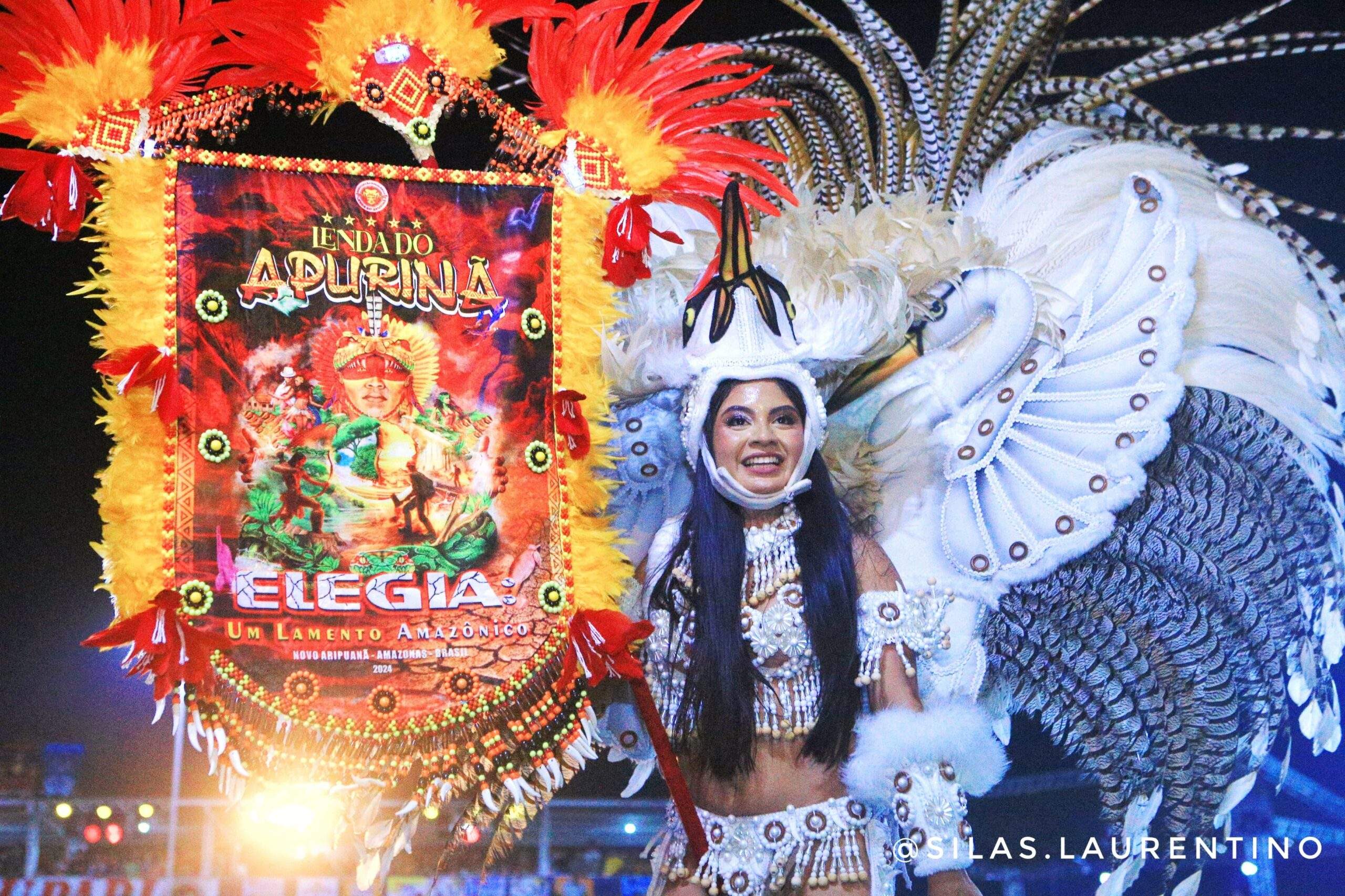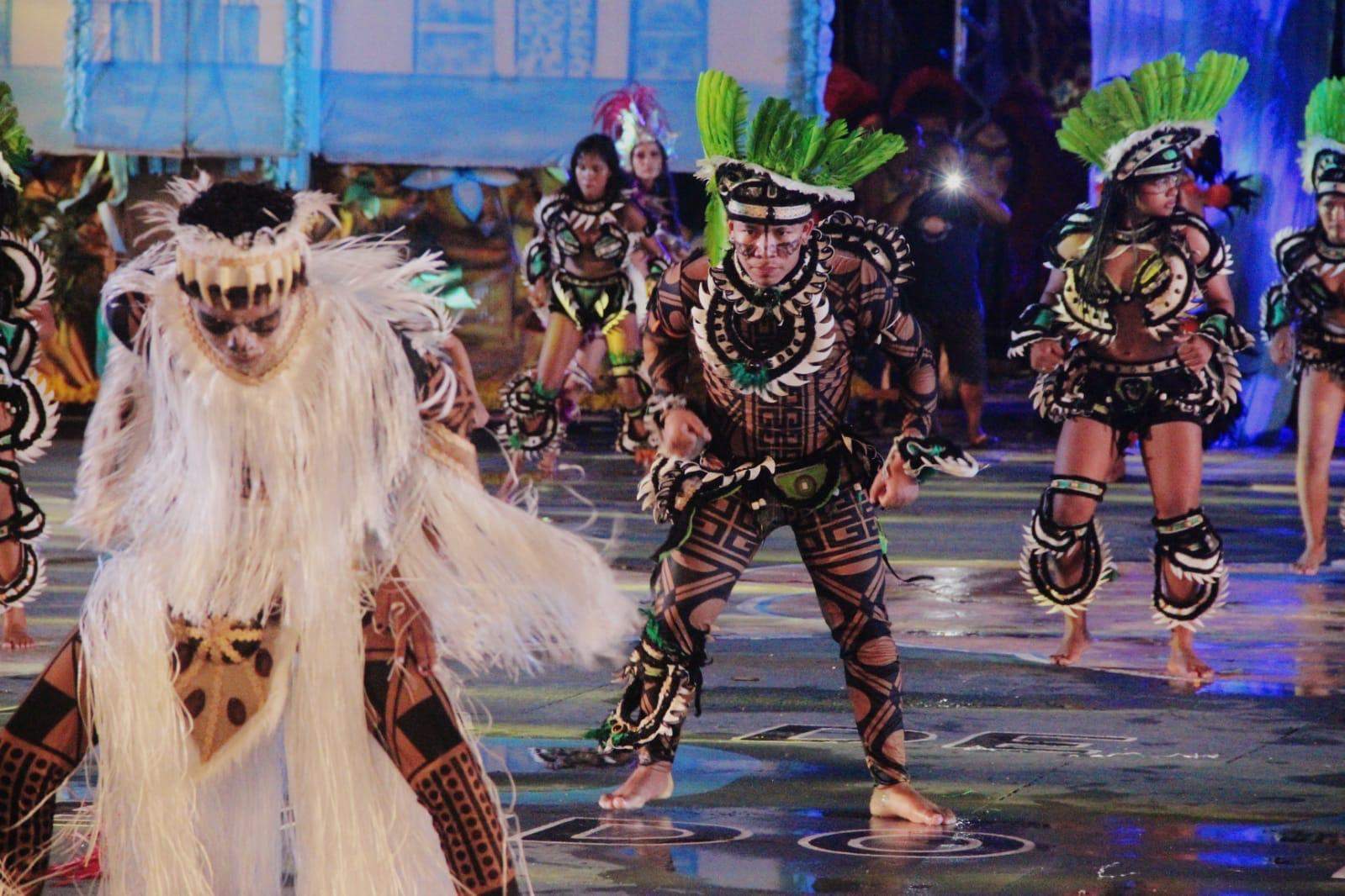 Lenda do Tucumã (verde e branco): considerada a matriarca do festival, narra a trajetória do guerreiro Tucum, defensor de seu povo e símbolo de bravura.