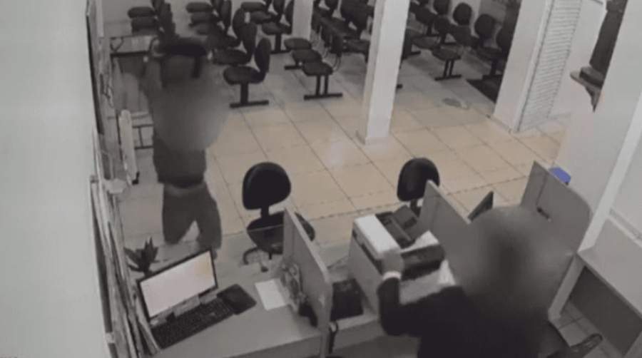 Imagens de câmeras de segurança mostram o homem discutindo com um enfermeiro e arremessando cadeiras, além de quebrar vidros, computadores e uma impressora do local.