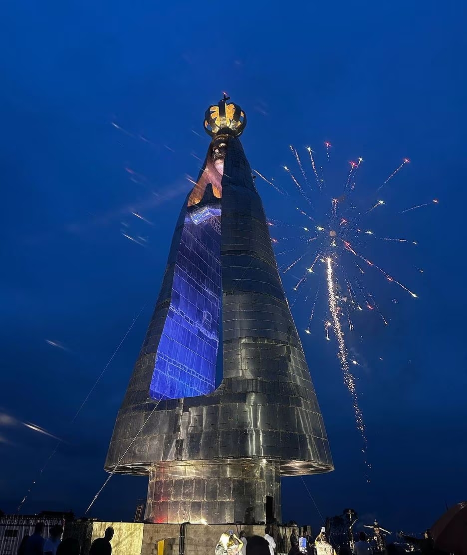 Estátua gigante de Nossa Senhora foi inaugurada com missa e festa na cidade de Aparecida, no interior de São Paulo Foto: Reprodução/Instagram/@gilmarpinnaescultor