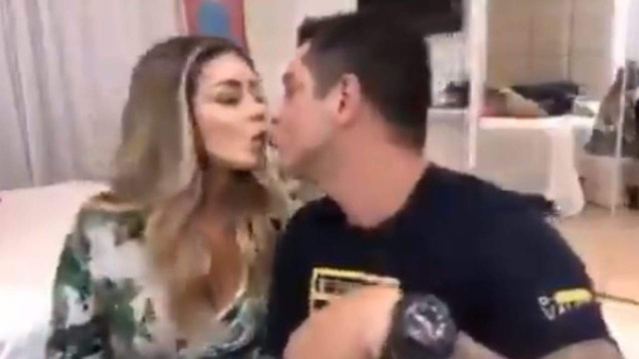 Em certo momento, a jovem aparentemente constrangida diz que “não gosta de grude” enquanto o pai justifica que não se trata de grude e sim de carinho.