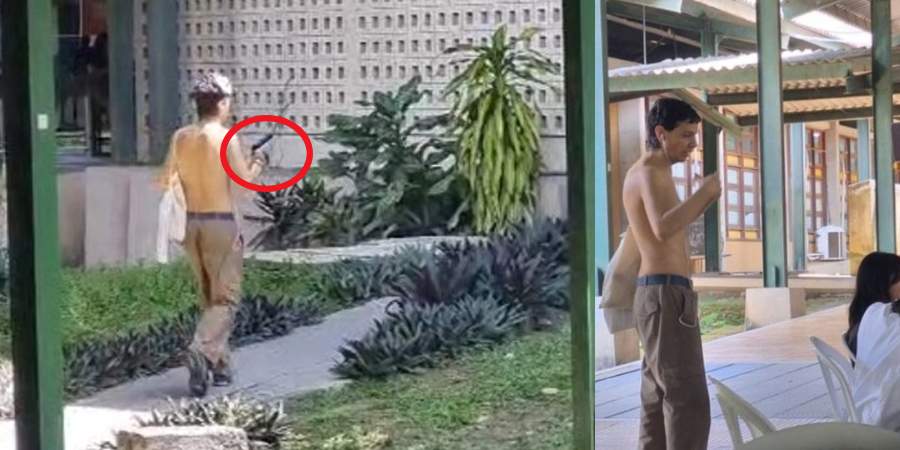 Jovem sem camisa, mascarado e com simulacro causa pânico no campus da UFAM; universidade se pronuncia