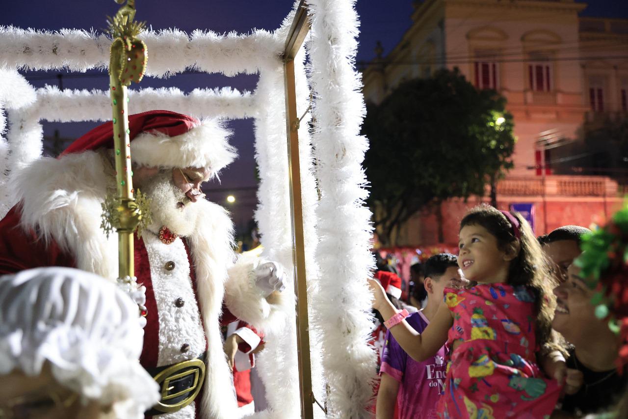 “O Mundo Encantado do Natal” teve como pontapé inicial a iluminação da árvore de Natal e a parada natalina com a chegada do Papai Noel