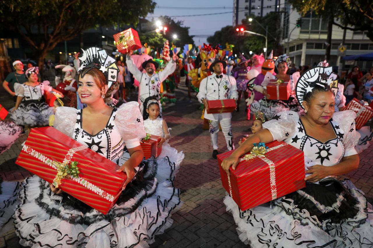 Em seguida, a animada parada natalina, comandada pelo Papai Noel, trouxe personagens emblemáticos ao Largo de São Sebastião, como duendes, elfos, super-heróis, patinadores, skatistas e toda a magia do Natal, que tomou conta do local, encantando crianças e adultos.