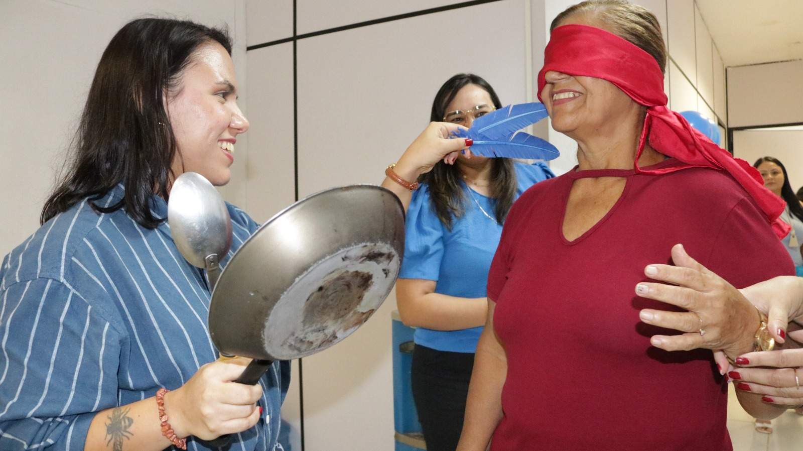Elas passaram vendadas por um corredor, auxiliadas por técnicas do setor Psicossocial da Manausprev, onde foram expostas a sons pontuais e altos como de apito, de panela sendo batida e de papel fino sendo amassado e esfregado.