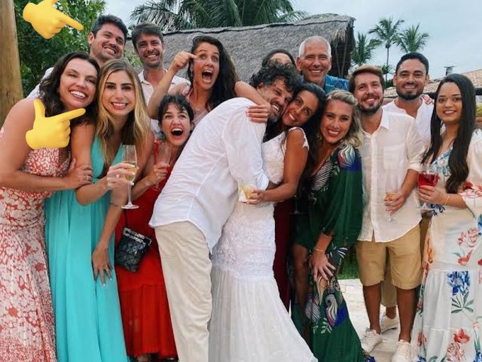 Em janeiro de 2022, Marcelo Courrege e Renata Heilborn marcaram presença no casamento de Carol Barcellos com André Vianna – Imagem: Divulgação