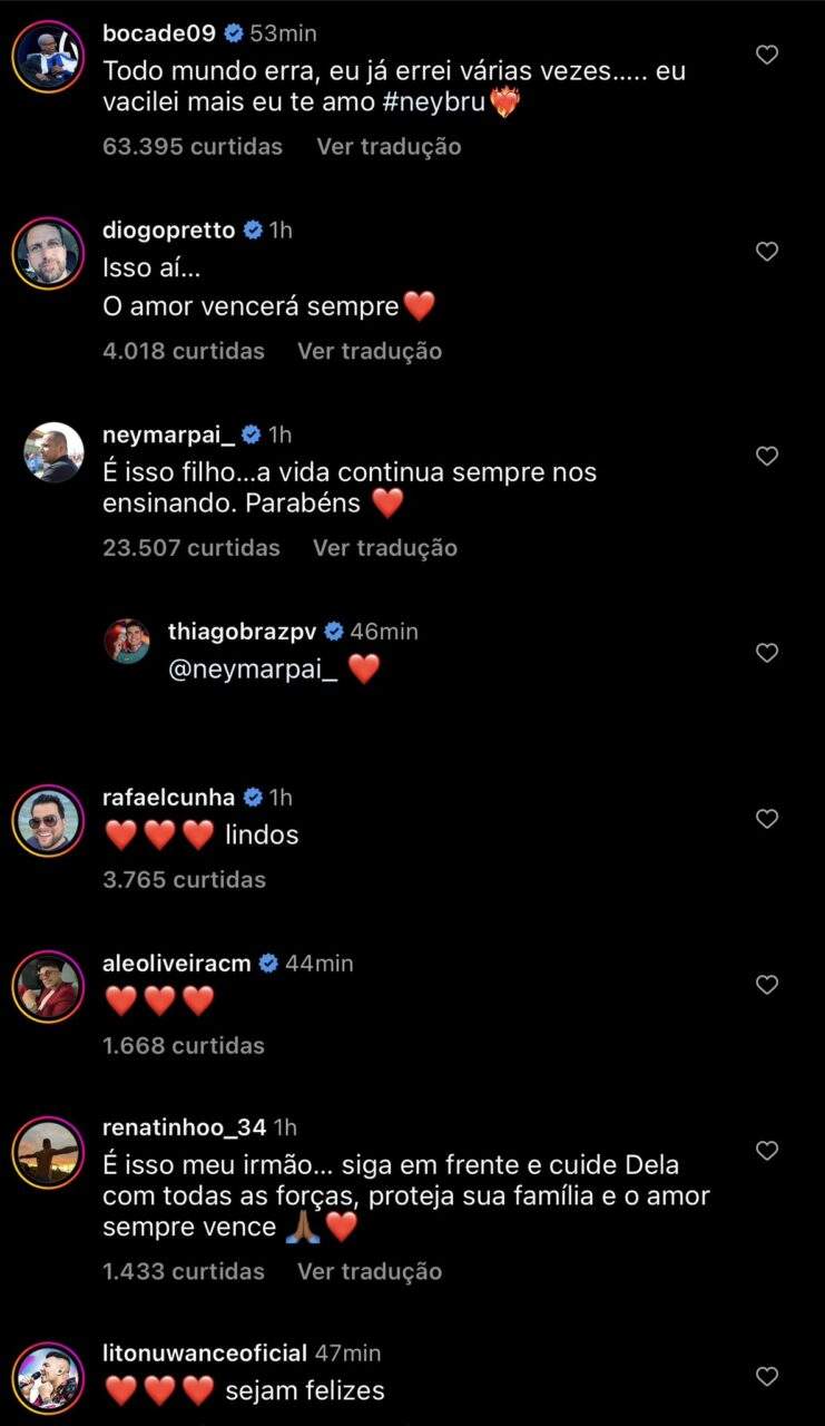 Logo após postar o textão de desculpas para a companheira grávida que foi traída, na publicação, Neymar recebeu demonstração de apoio e até elogios de centenas de amigos famosos. A demonstração de solidariedade por parte de admiradores de Neymar irritaram muitos internautas, que criticavam a “passada de pano” para a traição sofrida por Bruna Biancardi, grávida do jogador.