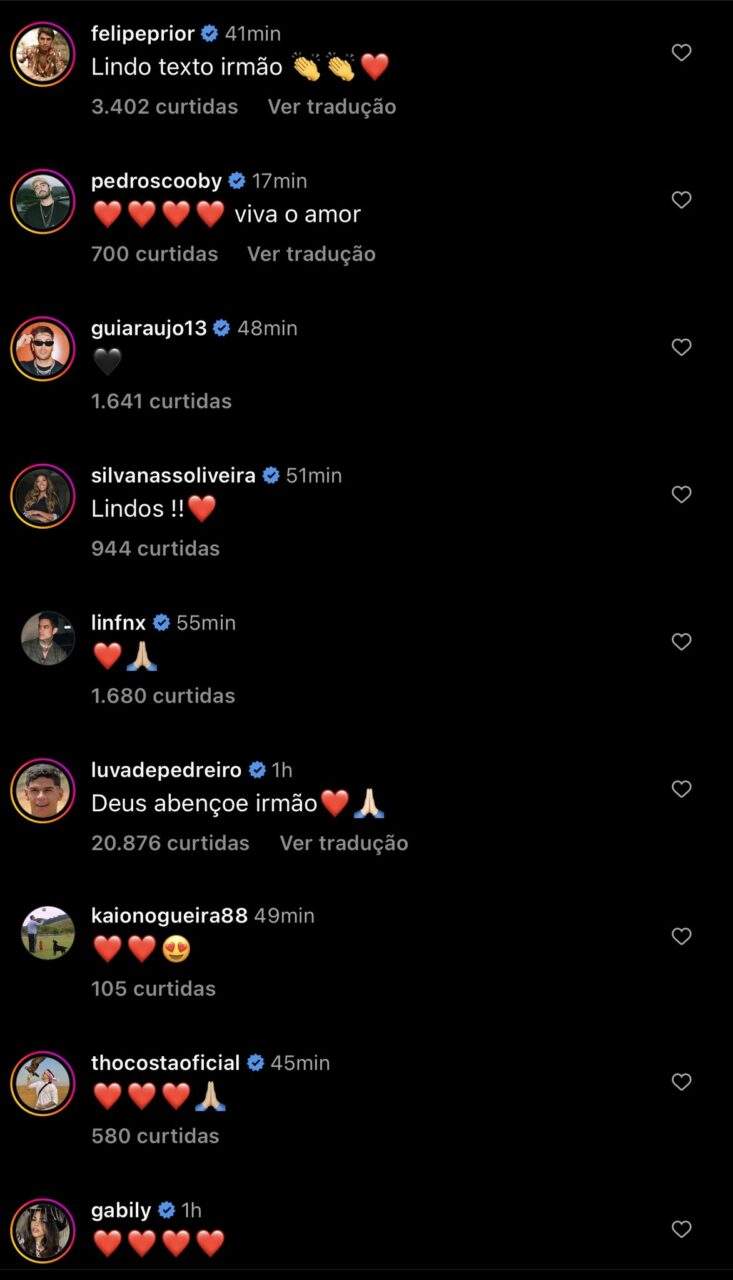 Luva de Pedreiro, Felipe Prior e Tirullipa foram um dos famosos que apoiaram Neymar após ele assumir que traiu sua namorada grávida. Confira algumas mensagens de apoio recebida pelo craque após ele chifrar a mulher grávida: