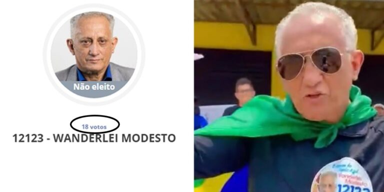 O candidato a vereador de Iranduba, Wanderlei Modesto (PDT), protagonizou uma situação inusitada nas eleições de 2024. Com apenas 18 votos nas urnas, o resultado foi muito abaixo do que ele havia previsto, e até desafiado. Modesto, que já foi repórter de programas policiais e ganhou notoriedade como o “Homem do Sapato Azul”, demonstrava confiança … Continue lendo No Amazonas: Candidato promete usar calcinha se tivesse menos de 30 votos, mas só consegue 18