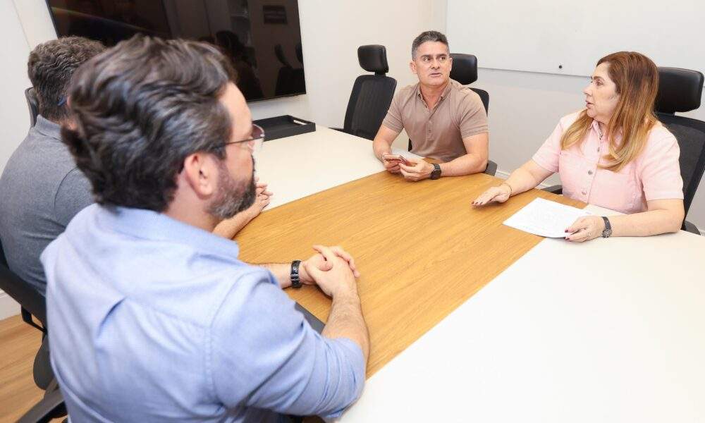 Ao lado do presidente da Comissão Municipal de Serviços Compartilhados (CMSC), Victor Cipriano, do vice-presidente, Igor Souza, e da vice-presidente para Assuntos Administrativos do Conselho Municipal...