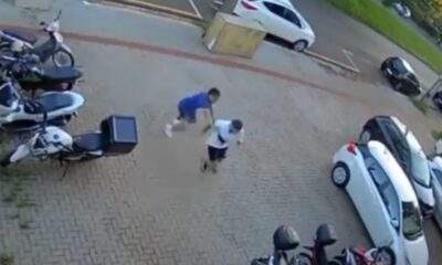 Um vídeo de câmeras de segurança mostra o momento em que David Schmidt Prado, de 37 anos, foi atacado a facadas no estacionamento de uma academia...