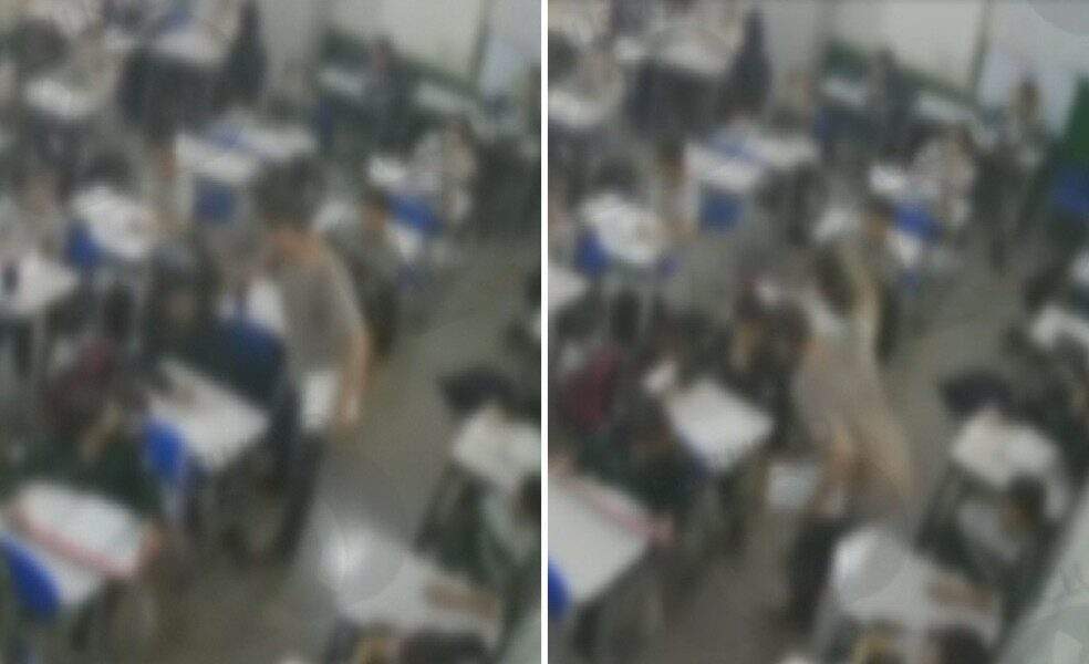 Um vídeo compartilhado nas redes sociais, mostra o momento em que um professor agride violentamente uma criança com vários tapas dentro da sala de aula, na...