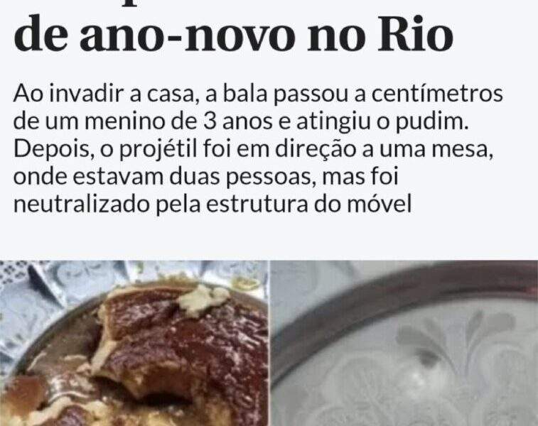 Um pudim foi atingido por uma bala perdida dentro de casa durante a celebração de Ano Novo de uma família em Itaboraí, na Região Metropolitana do...
