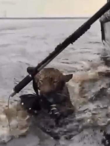 Onça é resgatada após nadar por horas no Rio Negro, em Manaus