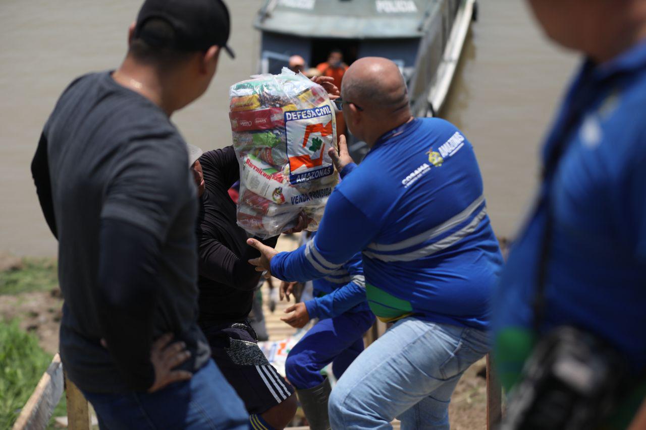 Ao todo, 7 mil cestas básicas foram entregues no Centro Educacional de Tempo Integral (Ceti) João Carlos Pereira dos Santos, em Tabatinga (a 1.108 quilômetros de Manaus). A ajuda humanitária será dividida para outros municípios da calha, como Benjamin Constant e Atalaia do Norte (a 1.121 e 1.138 quilômetros de Manaus, respectivamente).