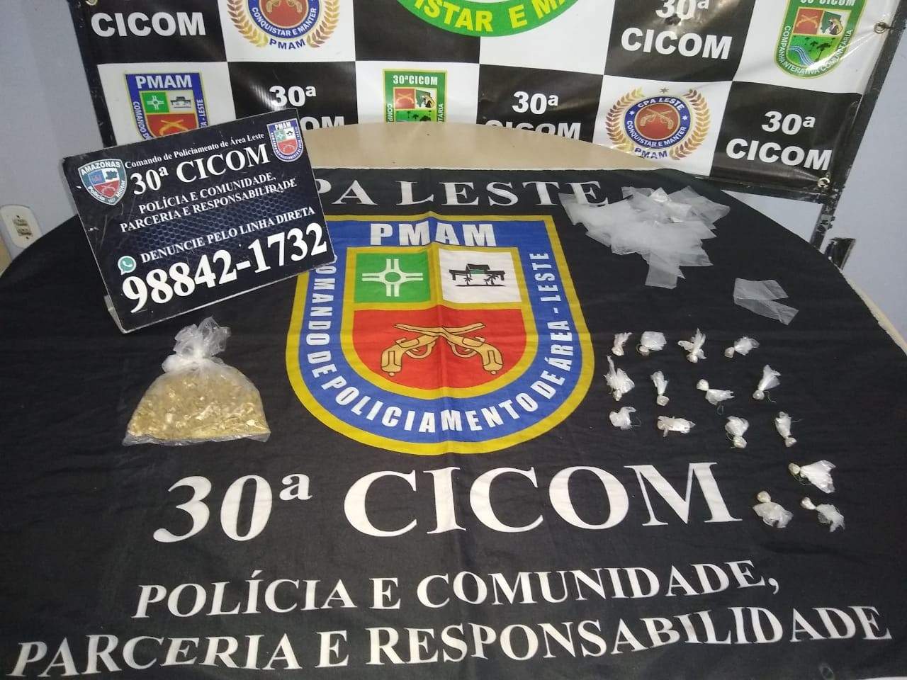 Em ações distintas, nesta quinta-feira (09/09), policiais militares da 30ª Companhia Interativa Comunitária (Cicom) detiveram dois homens, um por tráfico de drogas e outro por roubo de motocicleta e arma de fogo de fabricação caseira. As ações foram realizadas no ramal da UDV e bairro Jorge Teixeira, zona leste da capital.