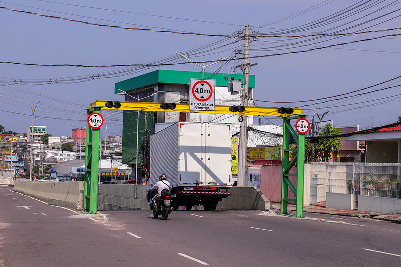 Visando prevenir sinistros de trânsito, a Prefeitura de Manaus, por meio do Instituto Municipal de Mobilidade Urbana (IMMU), instalou, na avenida João Valério, no sentido São Jorge, zona Centro-Sul, uma sinalização vertical equipada com sensor de presença. Essa medida tem como objetivo evitar colisões de veículos que possuam altura igual ou superior a quatro metros com o delimitador.