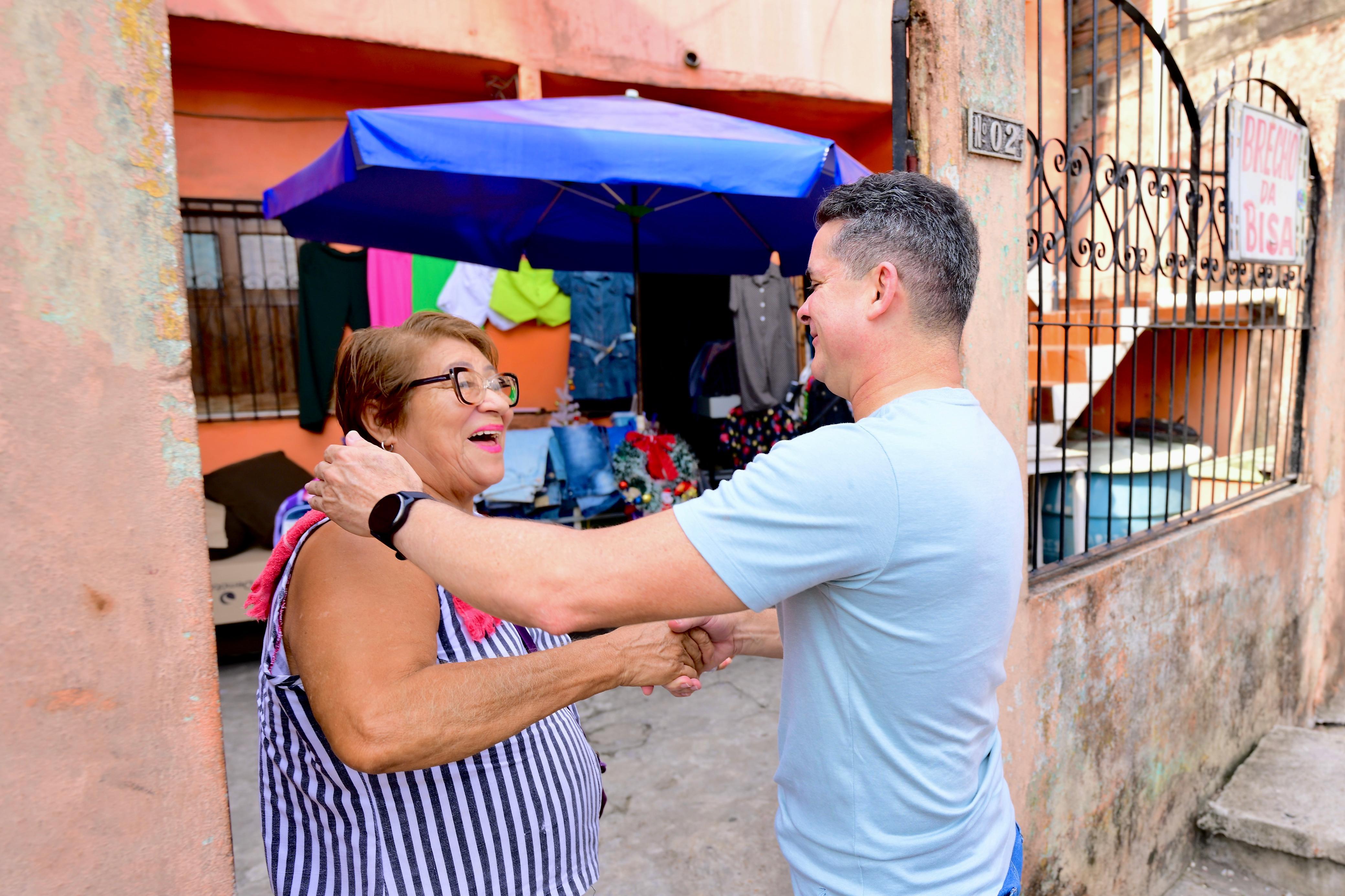 Entre os apoiadores na caminhada, estava dona Angela Colares, moradora do bairro há 37 anos, que compartilhou seu testemunho sobre as melhorias na saúde básica da capital.