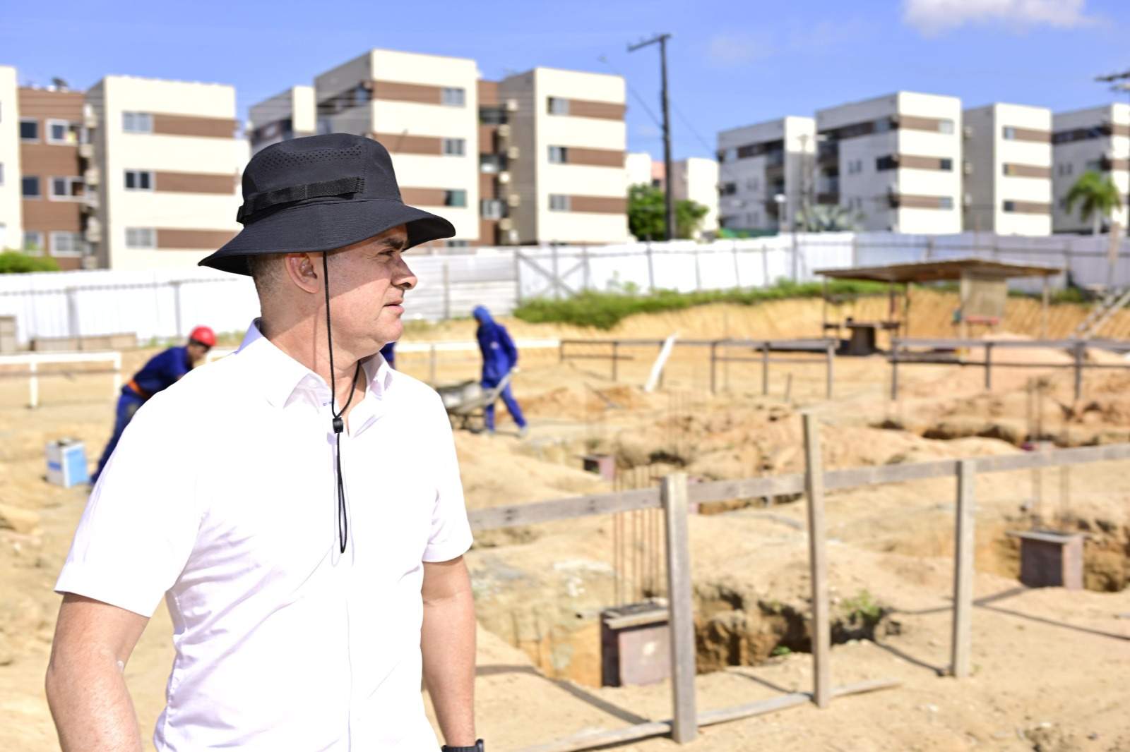 No conjunto Eliza Miranda, no bairro Distrito Industrial, o chefe do Executivo municipal conferiu o avanço das obras do novo Laboratório Sul, que faz parte da estratégia de fortalecimento da atenção primária. As fundações estão em processo de finalização, com as vigas sendo preenchidas para a estrutura ganhar forma nos próximos dias.