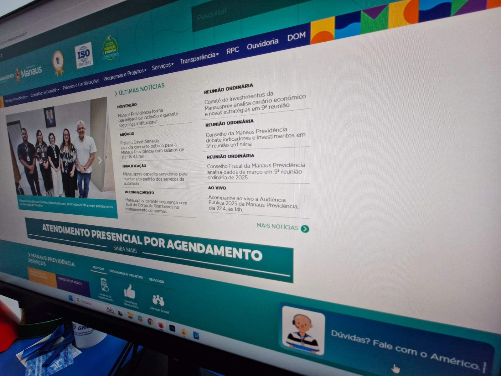 Localizado de forma destacada na página inicial do site, o “Américo” é um “tira-dúvidas” digital. Com um simples clique, o assistente se abre, apresentando um menu intuitivo com as cinco opções mais procuradas pelos usuários: Aposentadoria, para quem busca informações sobre como dar entrada no processo ou entender os requisitos; Agendamento Presencial, com o objetivo de facilitar a marcação de atendimentos para quem prefere o contato direto e ir à sede da Manausprev; Contracheque e Emissão de declaração, que apresenta como acessar rapidamente os documentos, e Recadastramento, com orientações sobre o processo anual essencial para manter os benefícios ativos.