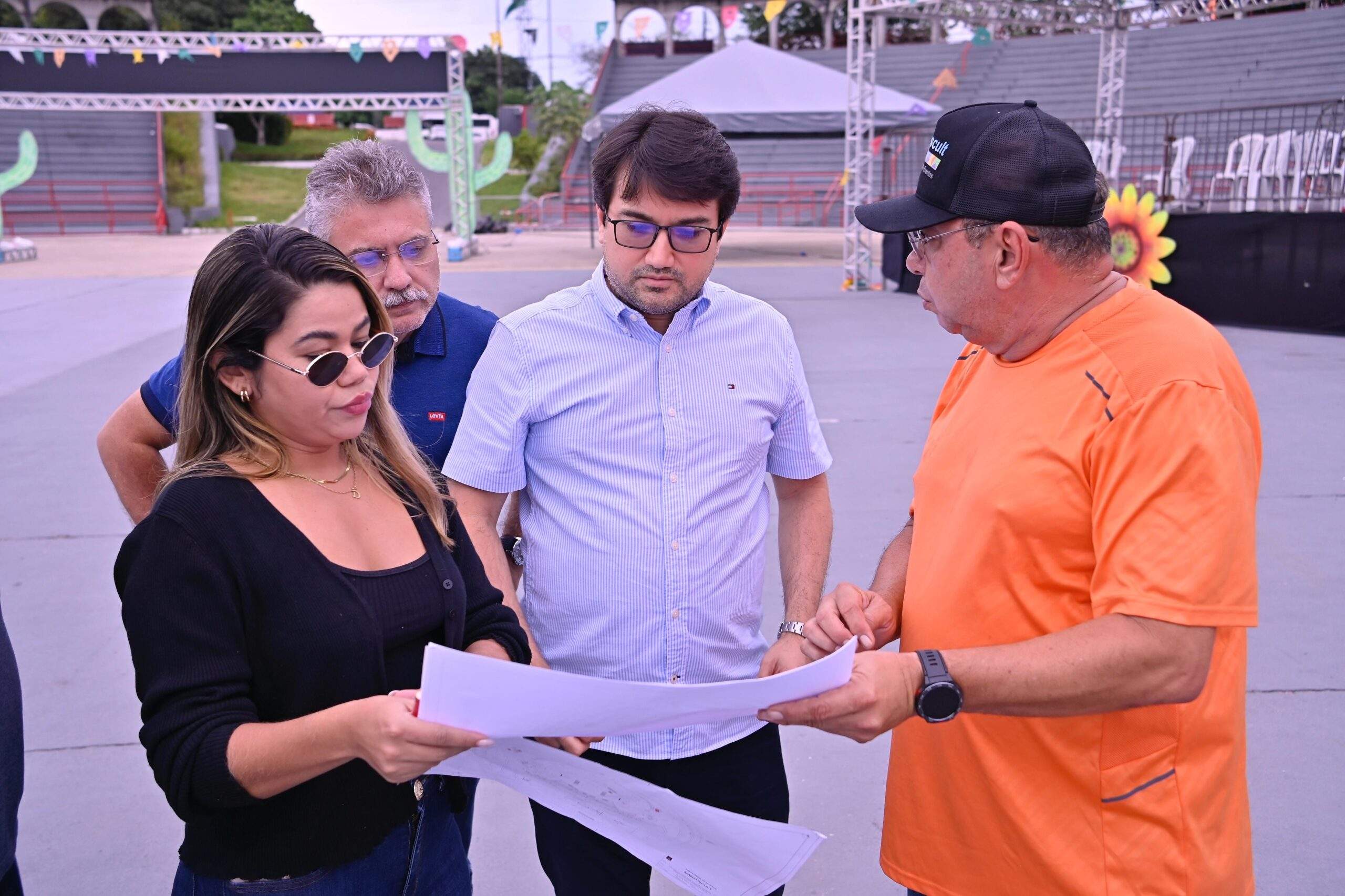 Durante a visita, foram avaliados aspectos como a montagem de instalações, a disposição das arquibancadas, acessibilidade, segurança, infraestrutura elétrica e iluminação, além da organização dos espaços destinados às barracas de gastronomia, artesanato e serviços. Todo esse trabalho busca proporcionar uma experiência de qualidade para o público e garantir as melhores condições para as apresentações folclóricas.