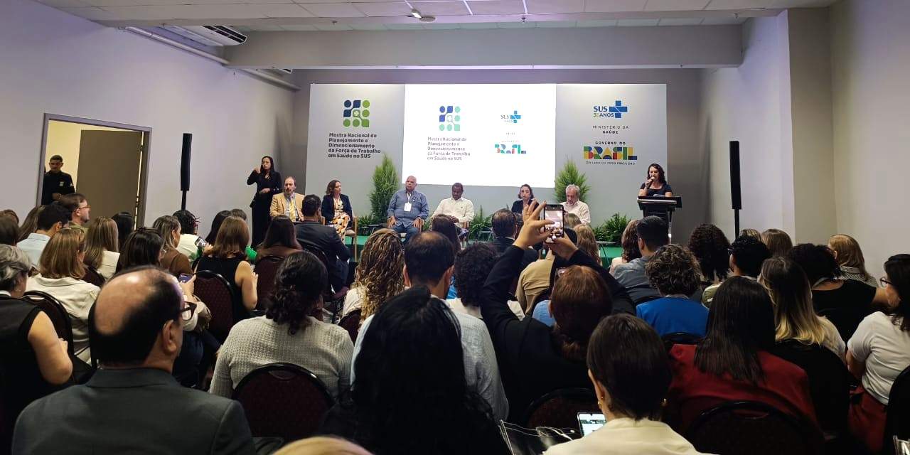 O evento reuniu alunos da formação em planejamento e dimensionamento da força de trabalho no SUS, tutores, gestores(as) de aprendizado e referências estaduais vinculadas à formação, representantes das escolas de saúde pública e demais instituições parceiras.