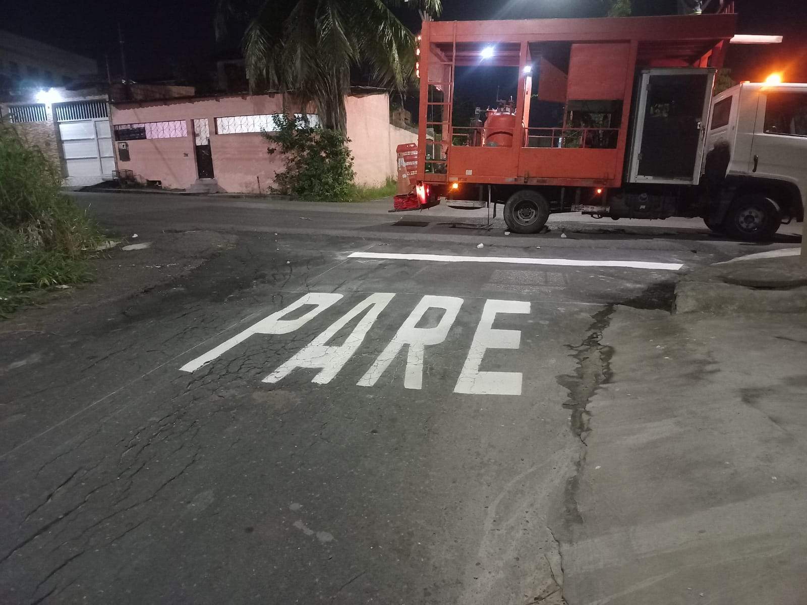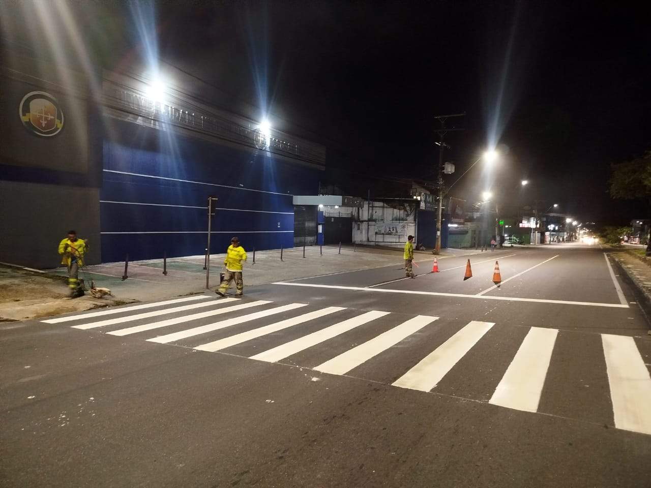 Durante o fim de semana e na noite de terça-feira, 1°/7, foram realizados serviços de sinalização horizontal com faixas de pedestres, legendas de “Pare”, linhas de retenção, linhas contínuas e sinalização em áreas escolares, proporcionando mais organização para condutores, ciclistas e pedestres, nas zonas Norte e Leste da capital.
