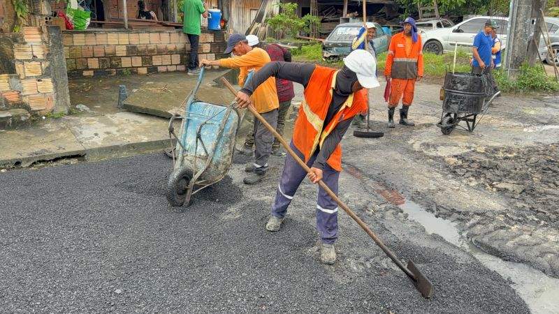 Uma equipe de 20 homens atuou na área com o auxílio de uma retroescavadeira e um rolo chapa, aplicando aproximadamente 20 toneladas de asfalto no cruzamento das ruas Êxodo e a travessa Israel, no bairro Novo Aleixo, zona Leste.
