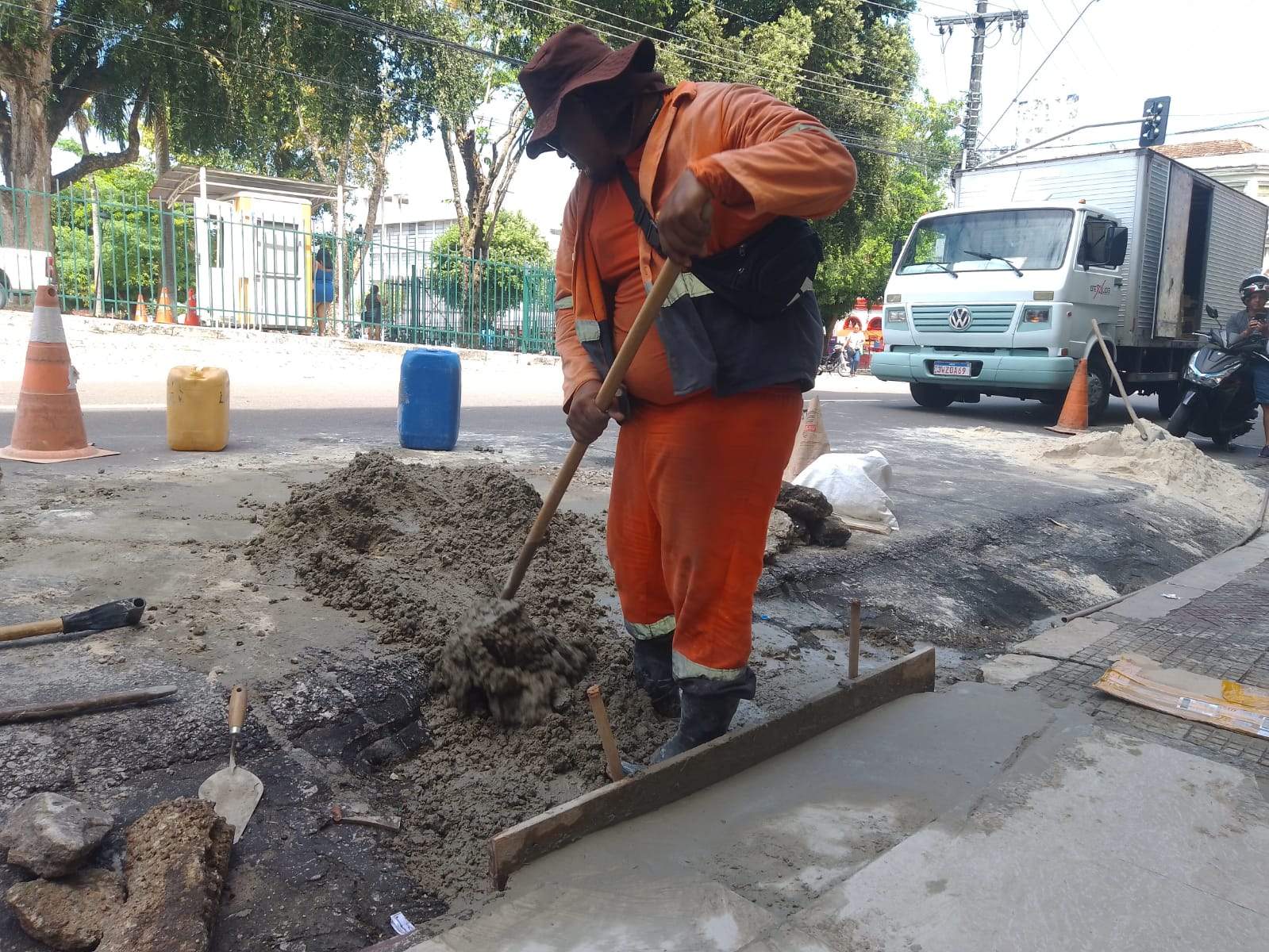 As frentes de obra atuam de forma simultânea em diferentes pontos do Centro. Na rua Lobo D’Almada, a equipe realiza a recuperação de 10 metros da rede de drenagem superficial, com reconstrução de meio-fio, sarjeta e calçada. Essa etapa é crucial para o direcionamento correto da água das chuvas até as caixas coletoras, evitando acúmulos que podem gerar transtornos à população.