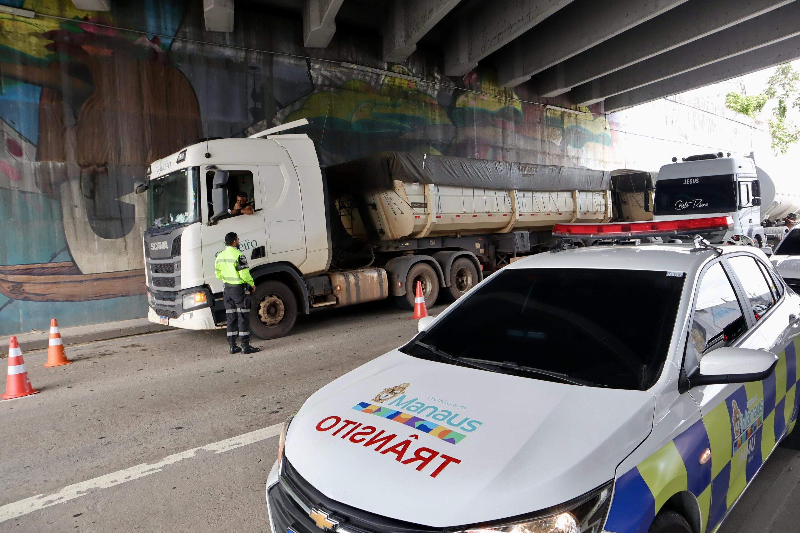 A Prefeitura de Manaus, por meio do Instituto Municipal de Mobilidade Urbana (IMMU), realizou, nesta segunda-feira, 19/5, mais uma etapa da operação “Carga Pesada”, desta vez na avenida Governador José Lindoso, parte inferior da avenida Margarita, no bairro Nova Cidade, zona Norte da capital.
