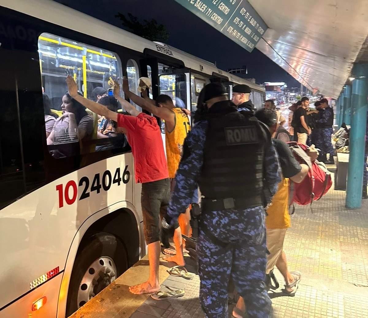Durante as ações de rotina, foram realizadas abordagens em 45 ônibus, totalizando 486 passageiros revistados nas avenidas Torquato Tapajós, Timbiras e Max Teixeira, regiões com registros frequentes de denúncias de assaltos.