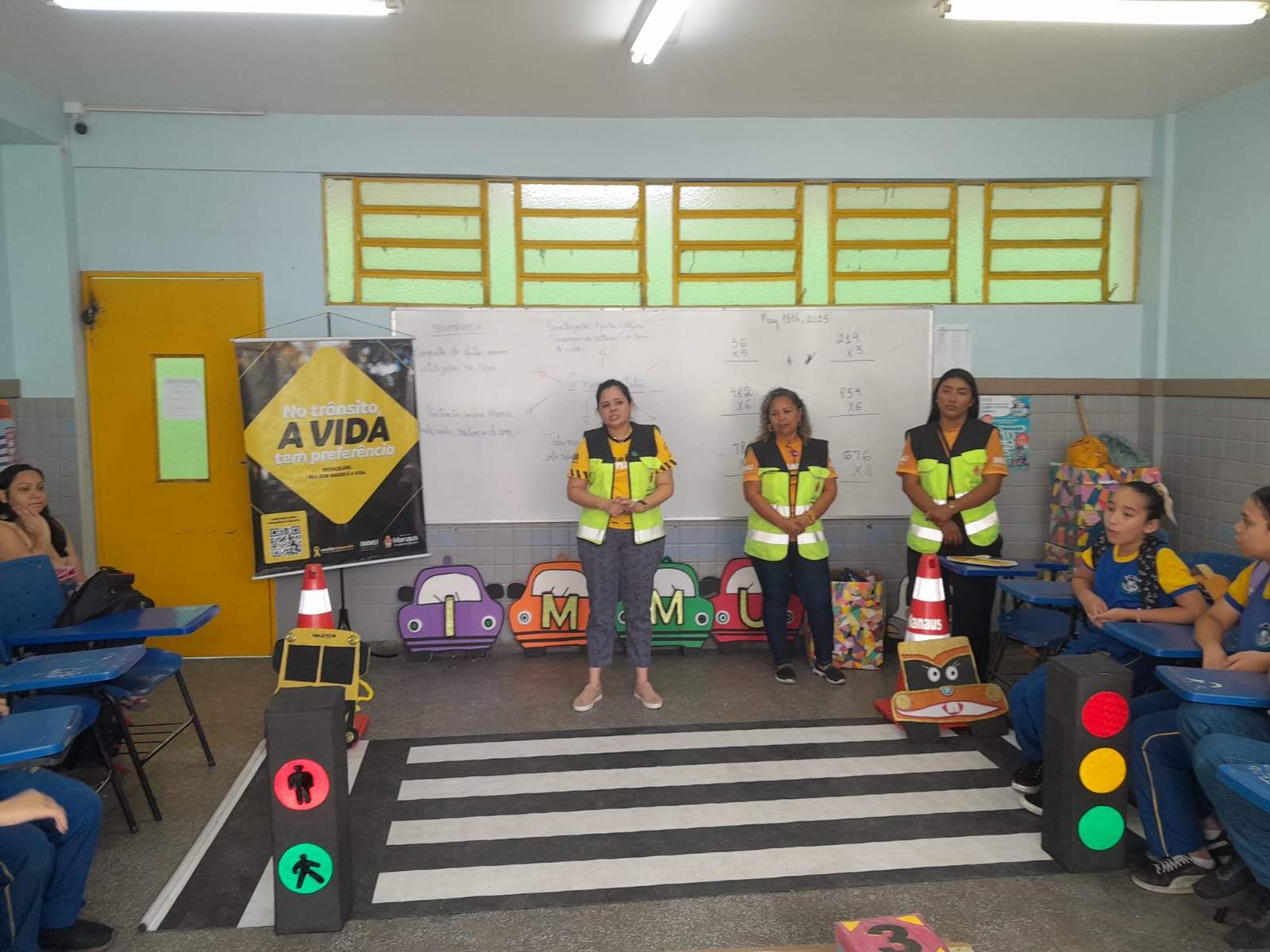 Os alunos da escola municipal Ulisses Guimarães, localizada no bairro Novo Aleixo, zona Leste, tiveram momentos de descontração e conhecimento sobre trânsito, nesta quinta-feira, 15/5, durante a realização do programa “Oca vai à Escola”, da Prefeitura de Manaus. A ação contou com a participação da equipe de Educação do Instituto Municipal de Mobilidade Urbana (IMMU) e o apoio das secretarias municipais de Educação (Semed), de Saúde (Semsa) e de Limpeza Urbana (Semulsp) e demais parceiros.