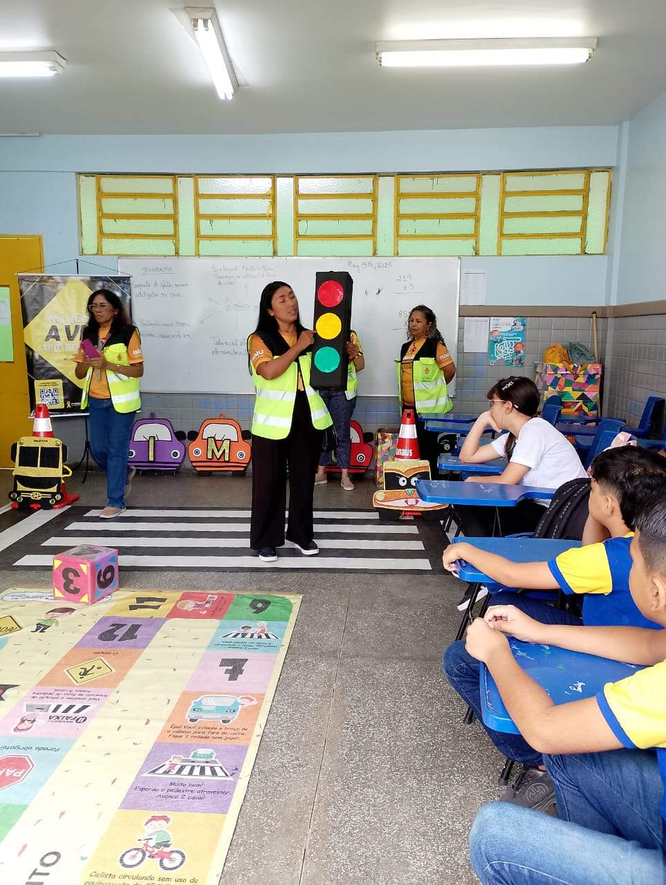 Durante a ação, os estudantes tiveram a oportunidade de interagir com os educadores e de participar de atividades lúdicas sobre regras e legislação de trânsito. Entre os jogos que mais chamaram atenção estavam o tapete pedagógico e o jogo da memória.