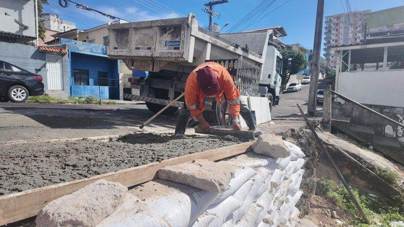 O trabalho de contenção com rip-rap é utilizado para conter processos erosivos e dar mais resistência estrutural ao solo. As equipes da Seminf também atuam na reconstrução da calçada, priorizando a acessibilidade e a segurança dos moradores, bem como a escadaria, que também está sendo revitalizada para garantir maior durabilidade e conforto no uso diário.