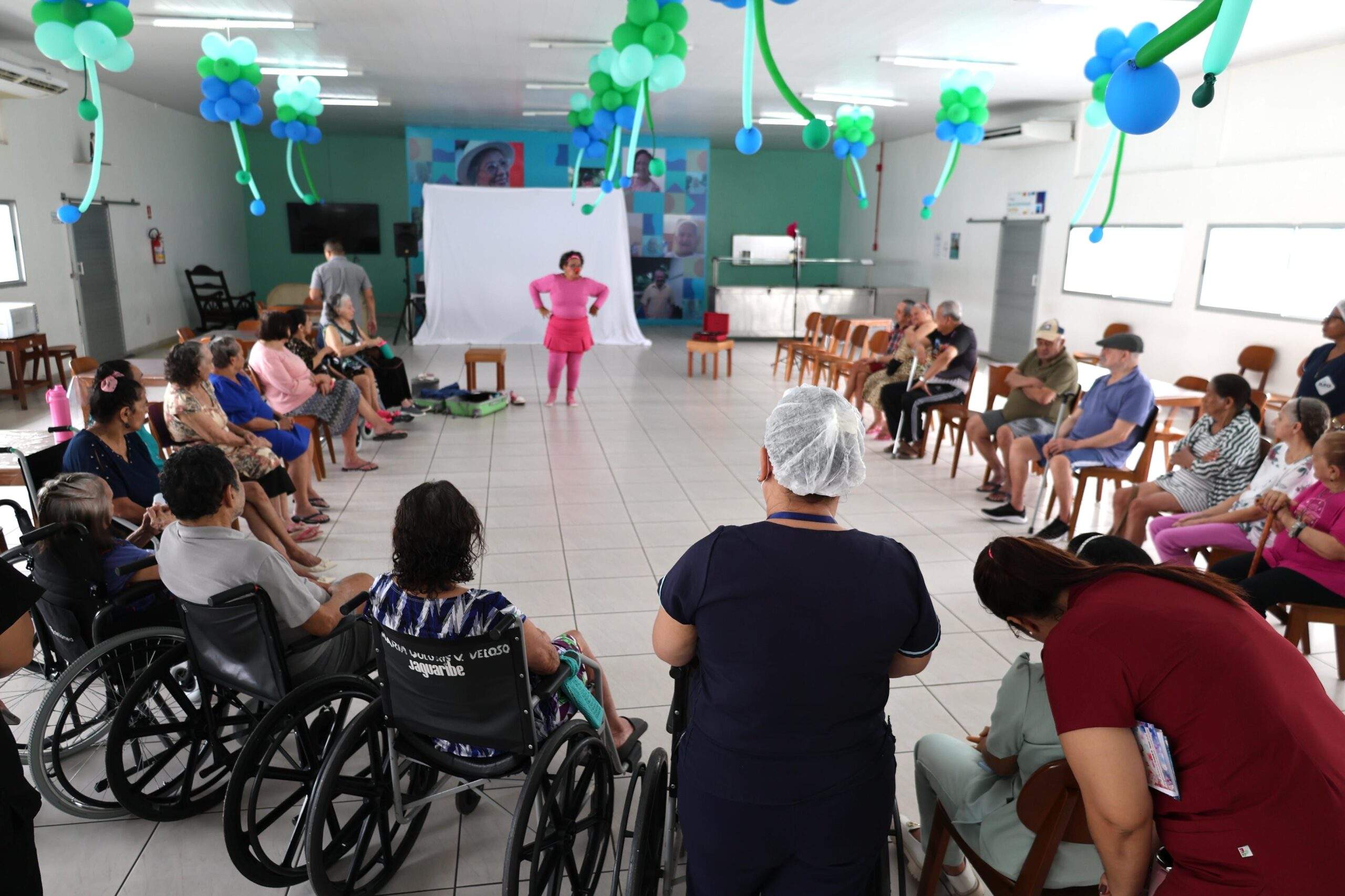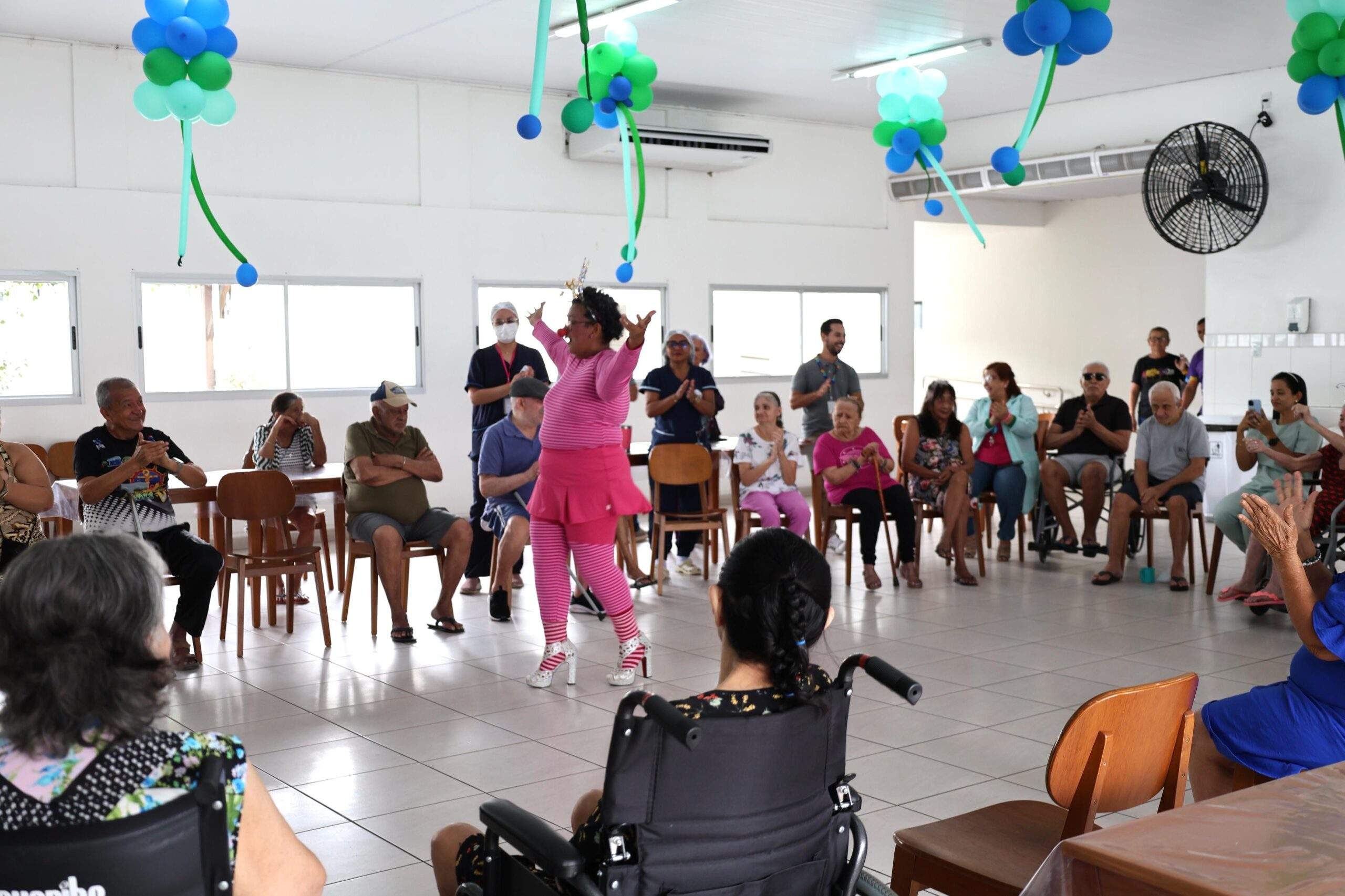 Em mais um momento de arte, alegria e cultura, os idosos e idosas residentes da Instituição de Longa Permanência (ILPI) da Fundação de Apoio ao Idoso Doutor Thomas (FDT), da Prefeitura de Manaus, receberam, nesta terça-feira, 1º/4, uma apresentação especial do espetáculo de teatro “A Grande Bailarina – Dançando Por Aí”. A performance foi realizada pelo grupo artístico Luzeiros Cultura & Arte.
