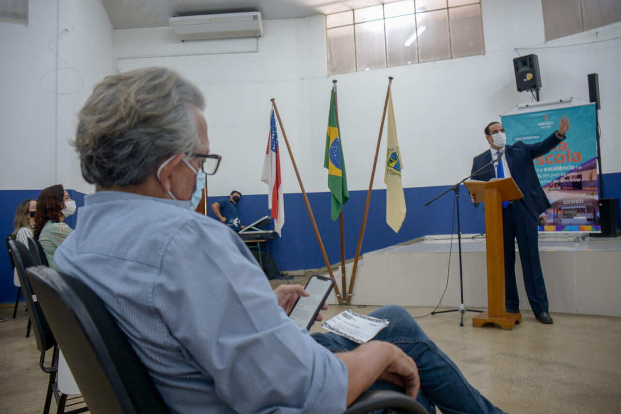 O secretário da Semed, Pauderney Avelino, participou da abertura e destacou a parceria como um instrumento que vai ajudar os alunos, pais e familiares como parte deste contexto.