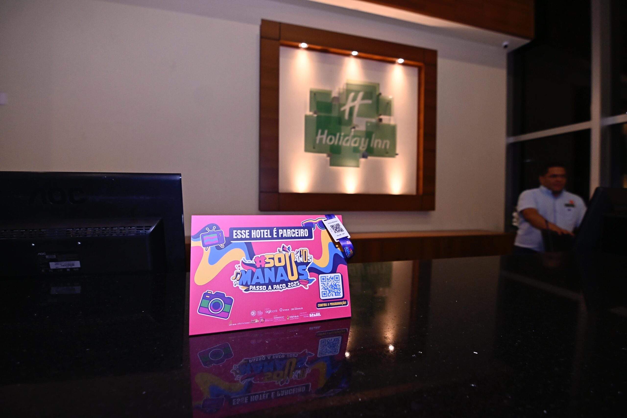 Nesta quarta-feira, 27/8, o diretor-presidente da ManausCult, Jender Lobato, visitou um dos hotéis parceiros, o Holiday Inn, acompanhado da vice-presidente de Turismo da fundação, Oreni Braga. A visita reforçou a importância da iniciativa e o alinhamento entre a rede hoteleira e o festival.