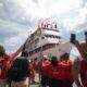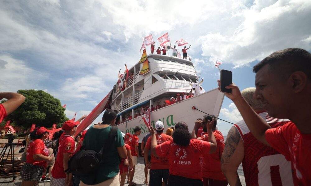 A bordo com 302 torcedores, embarcação do Movimento Amigos do Garantido é recebida com festa em Parintins