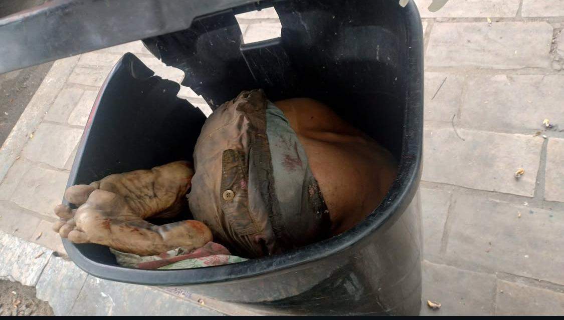 Vídeo feito por populares registraram o momento que o corpo do homem é retirado da lixeira, confira :