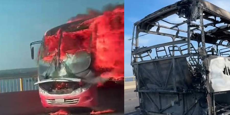 Imagens registradas por testemunhas mostram o veículo tomado pelas chamas e envolto por uma densa nuvem de fumaça que pôde ser vista de longe. O fogo consumiu o ônibus rapidamente, chamando a atenção de quem passava pela via.
