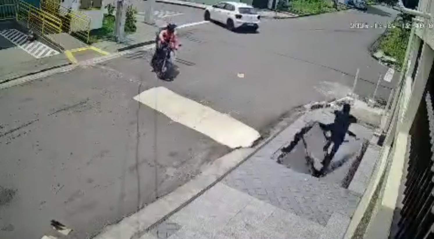 Vídeo flagra momento que cratera se abre em calçada e engole jovem em Manaus
