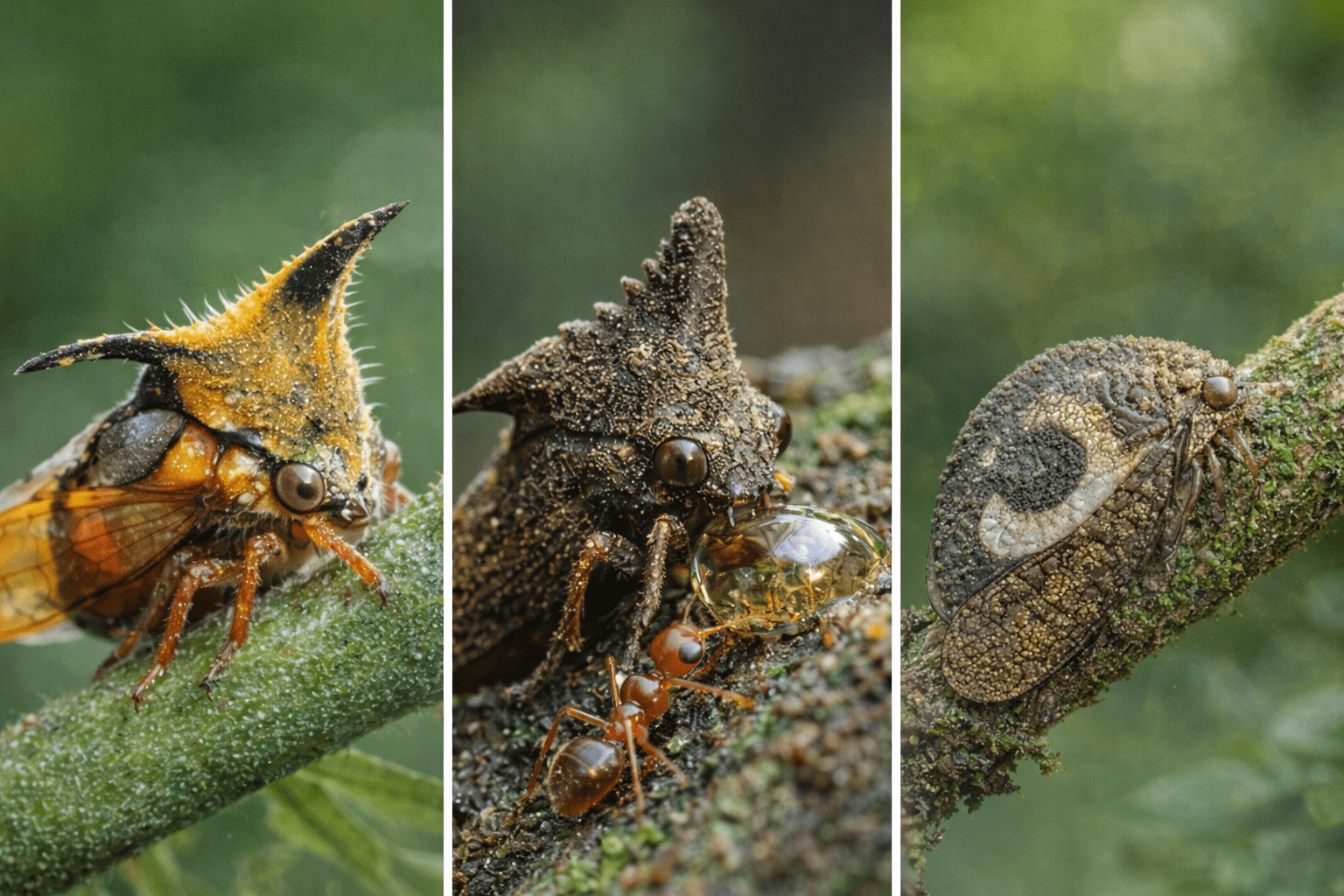 Com formatos que lembram espinhos, galhos, conchas ou até pequenos capacetes, esses insetos parecem verdadeiros ninjas da natureza, usando a camuflagem como principal aliada para sobreviver. Ao se confundirem com partes das plantas onde vivem, eles dificultam a ação de predadores e conseguem se alimentar com mais segurança.